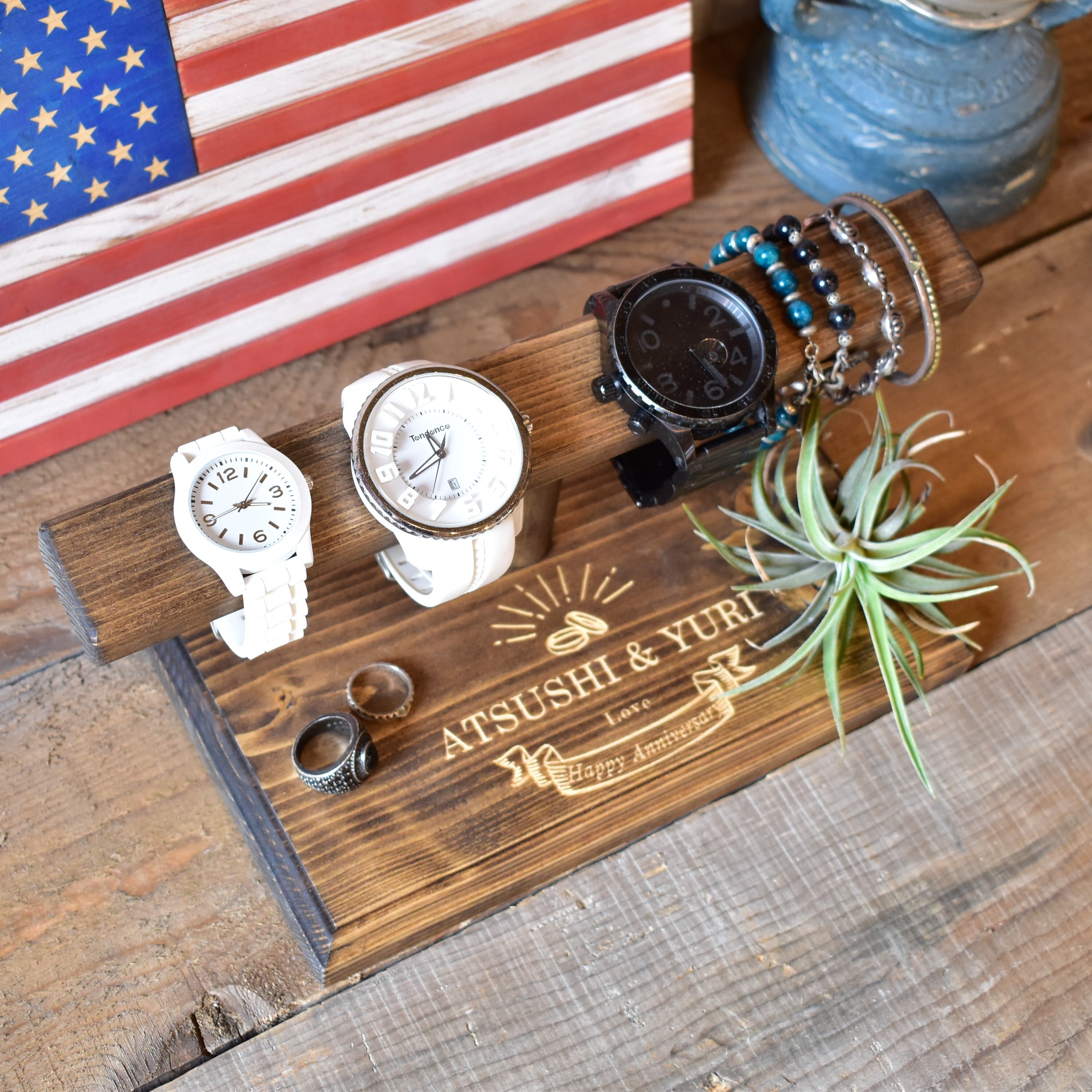 合わせてブレスレットやリングも一緒に飾ることができます。