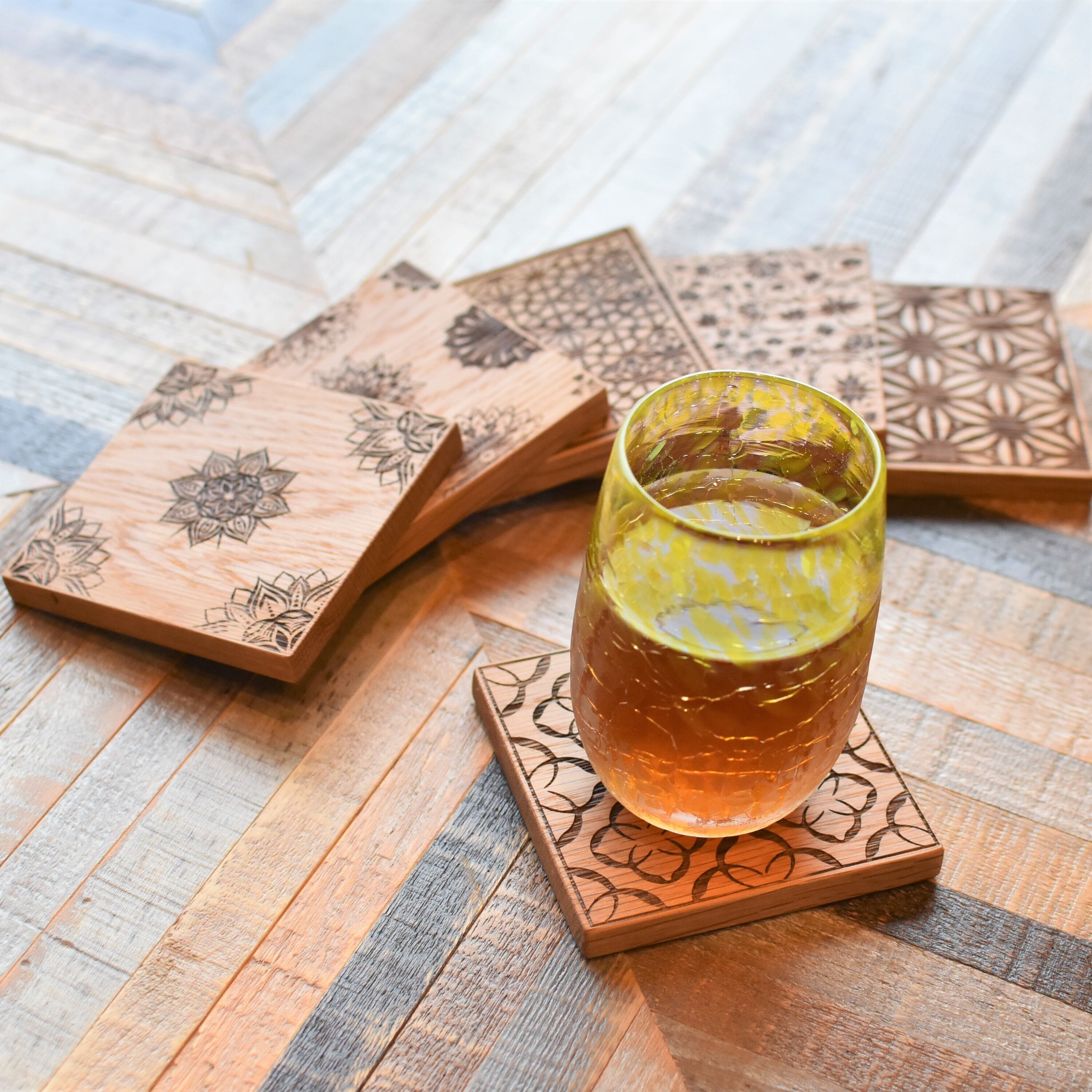 レーザー刻印で一枚一枚違うデザインを彫っております。
