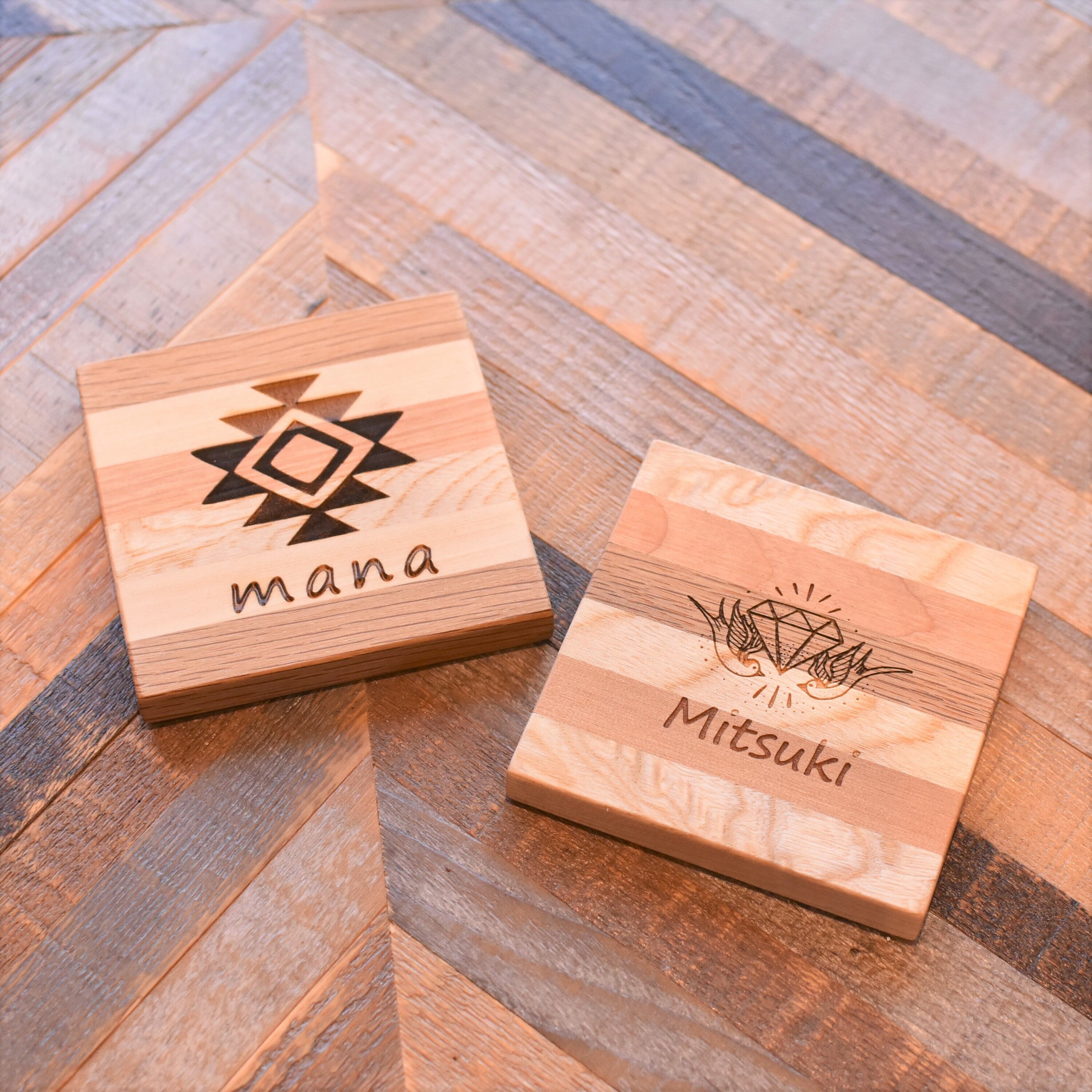 名前入れ寄木ウッドコースター♪【ギフトラッピング可能】